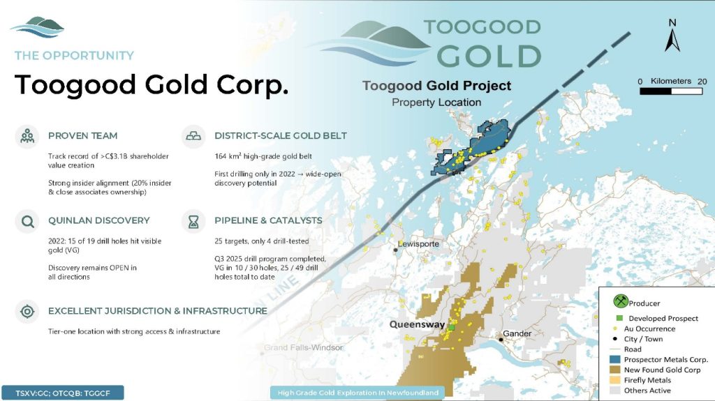 This is not your typical crowded field of projects. Toogood Gold’s project is in Newfoundland where there are more strategic advantages than meets the eye!